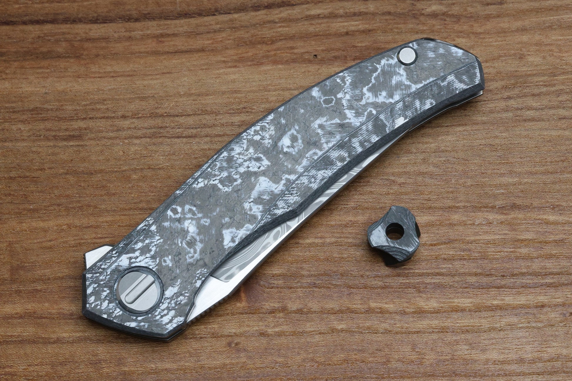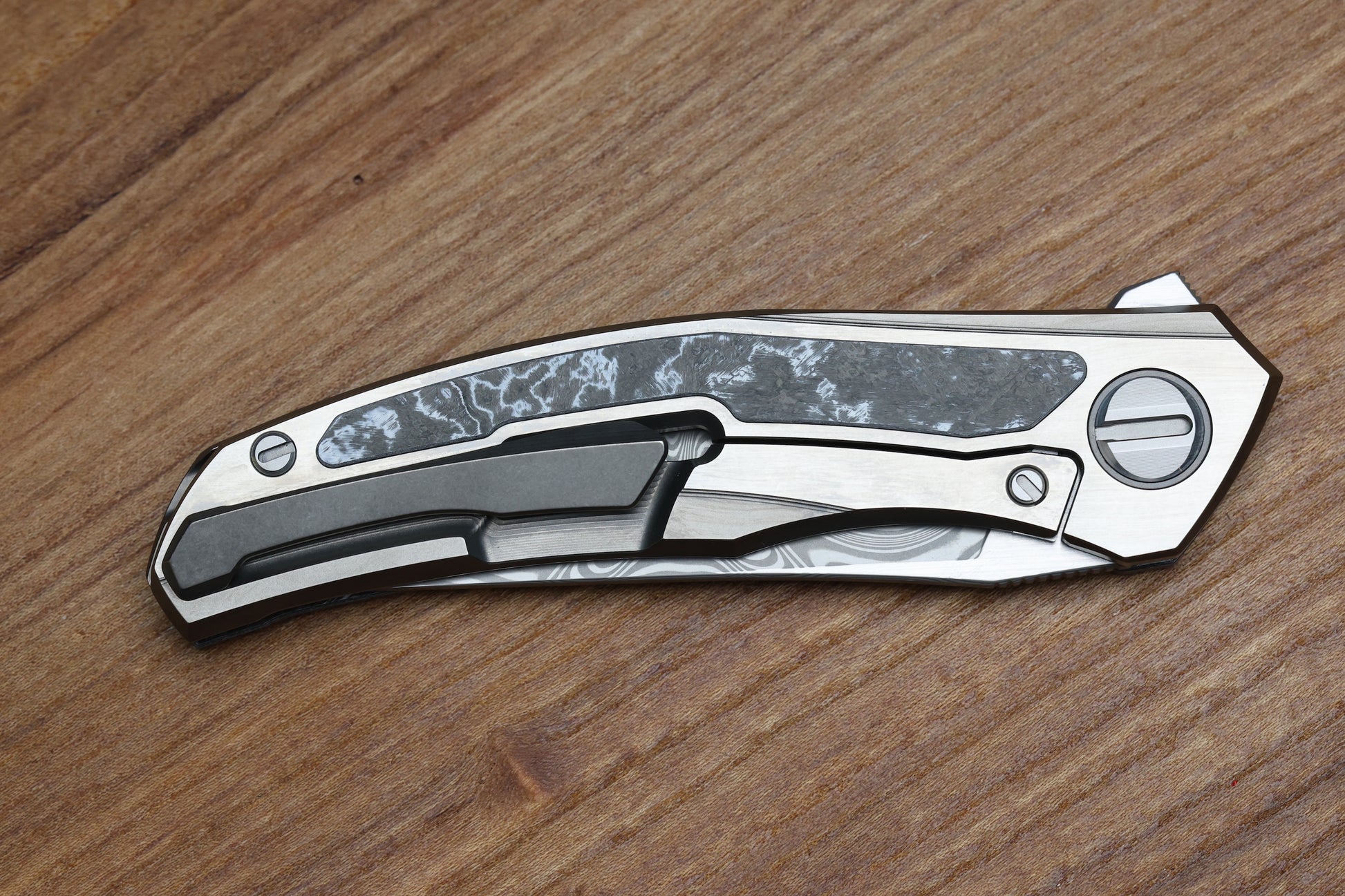 Stonewashed/polished flats Titanium frame lock handle scales with White CarboTi presentation scale