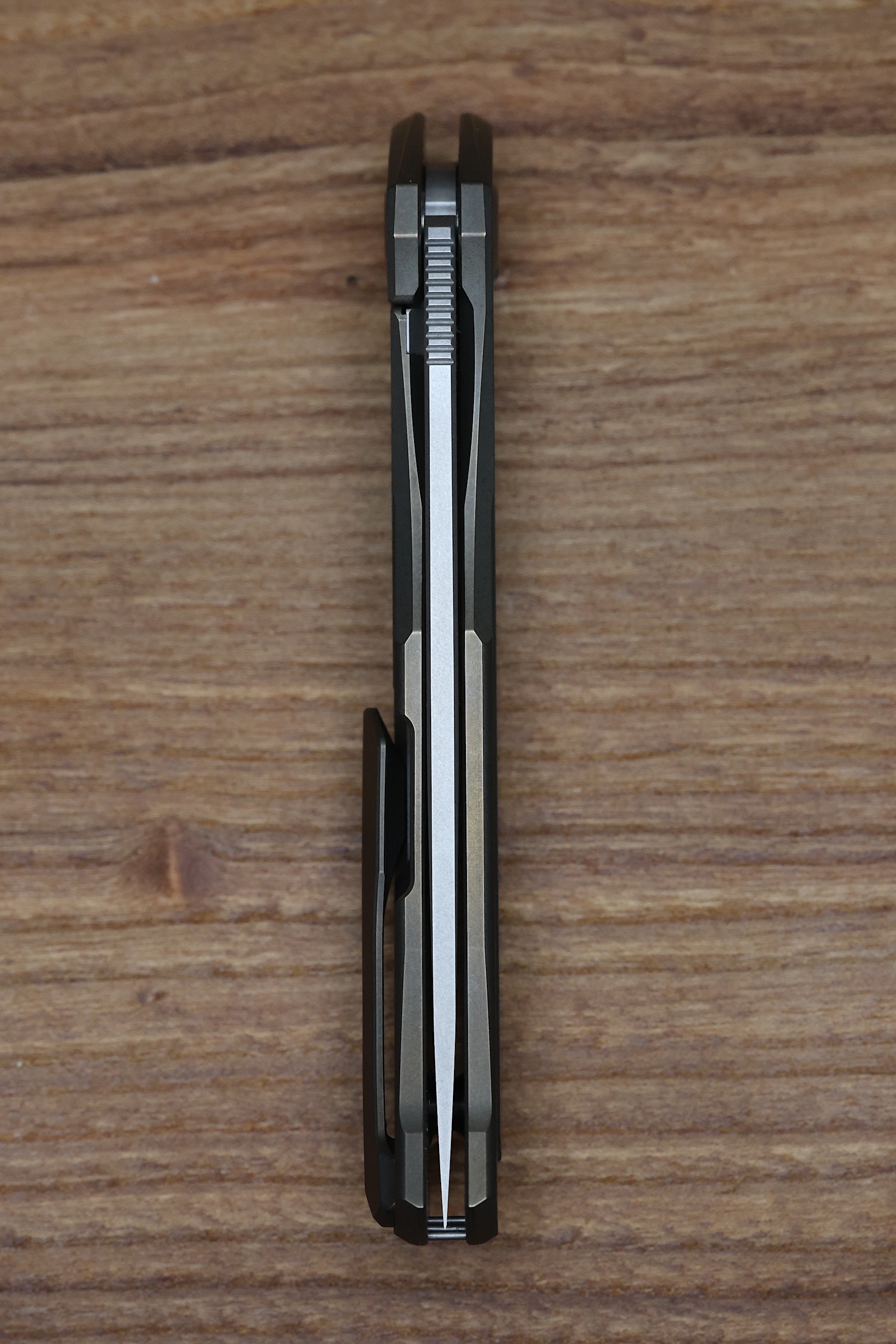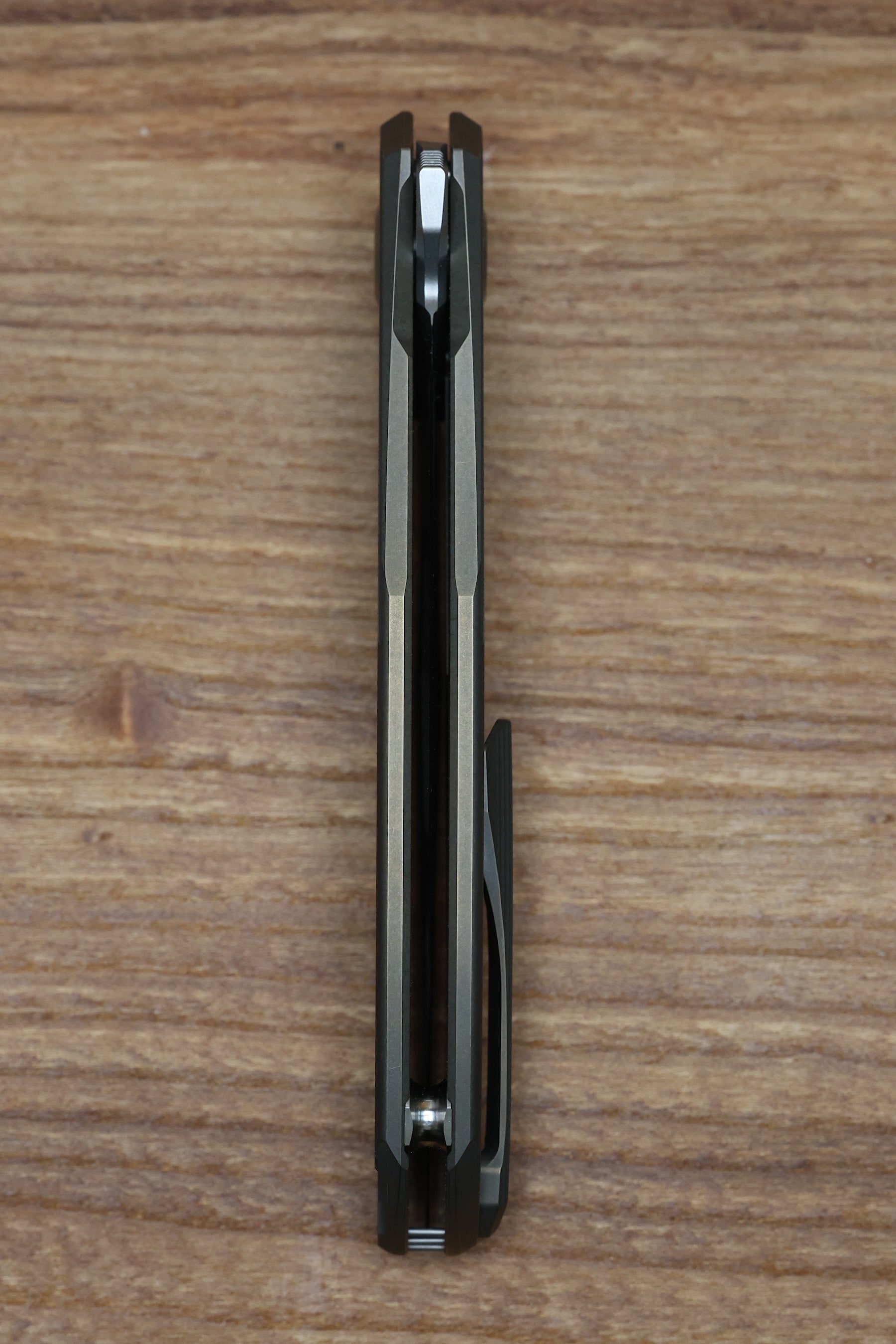 - Tip up Bronze anodized Titanium pocket clip with hidden screw