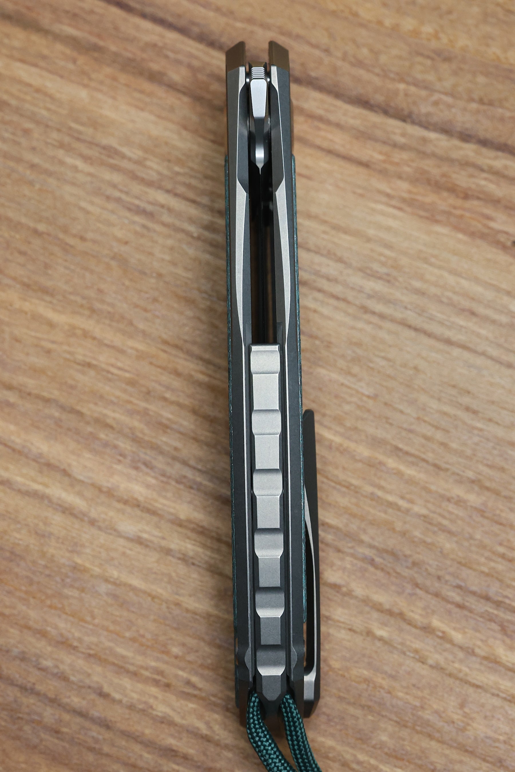 - Stonewashed Titanium backspacer with lanyard hole
