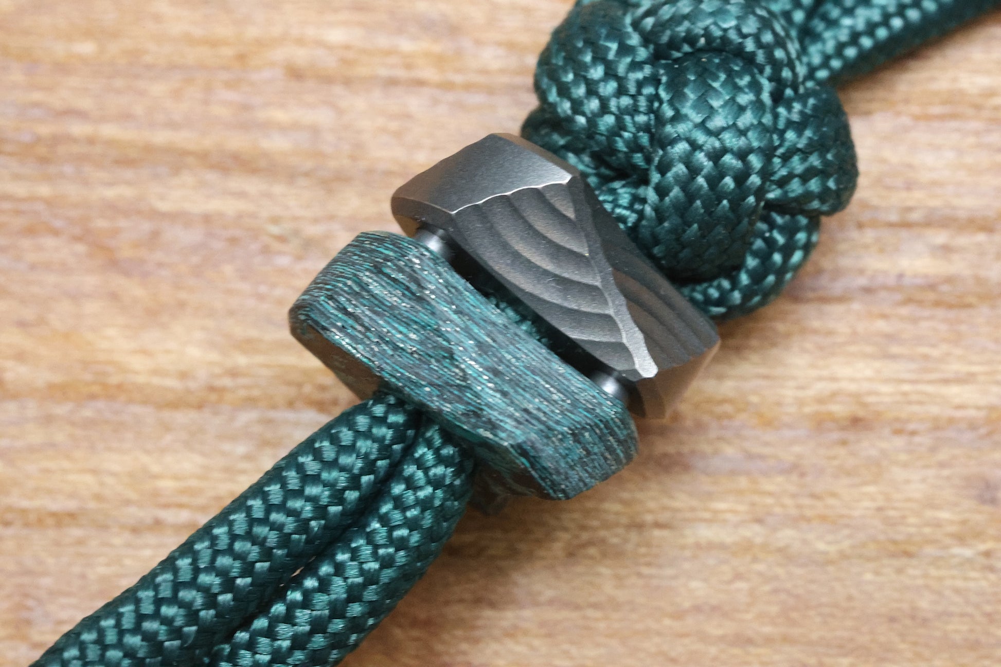 - Green lanyard with Teal Magnetic CarboTi/Titanium Helix bead