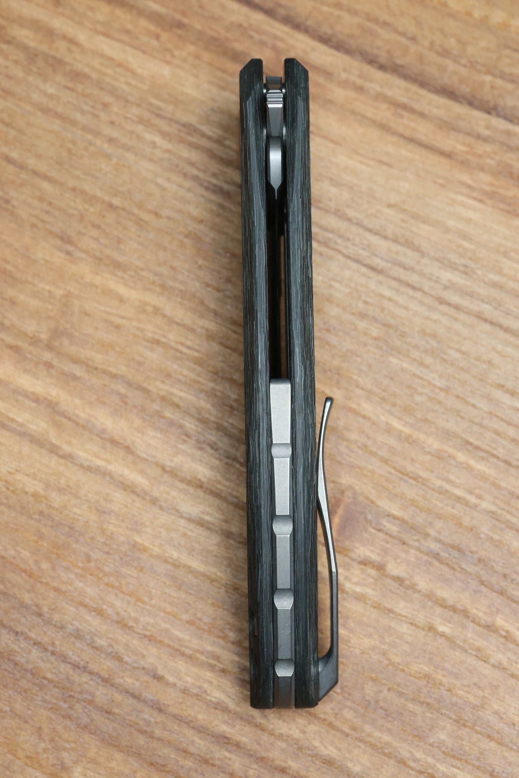 - Tip up 3D machined stonewashed Titanium pocket clip with hidden screw