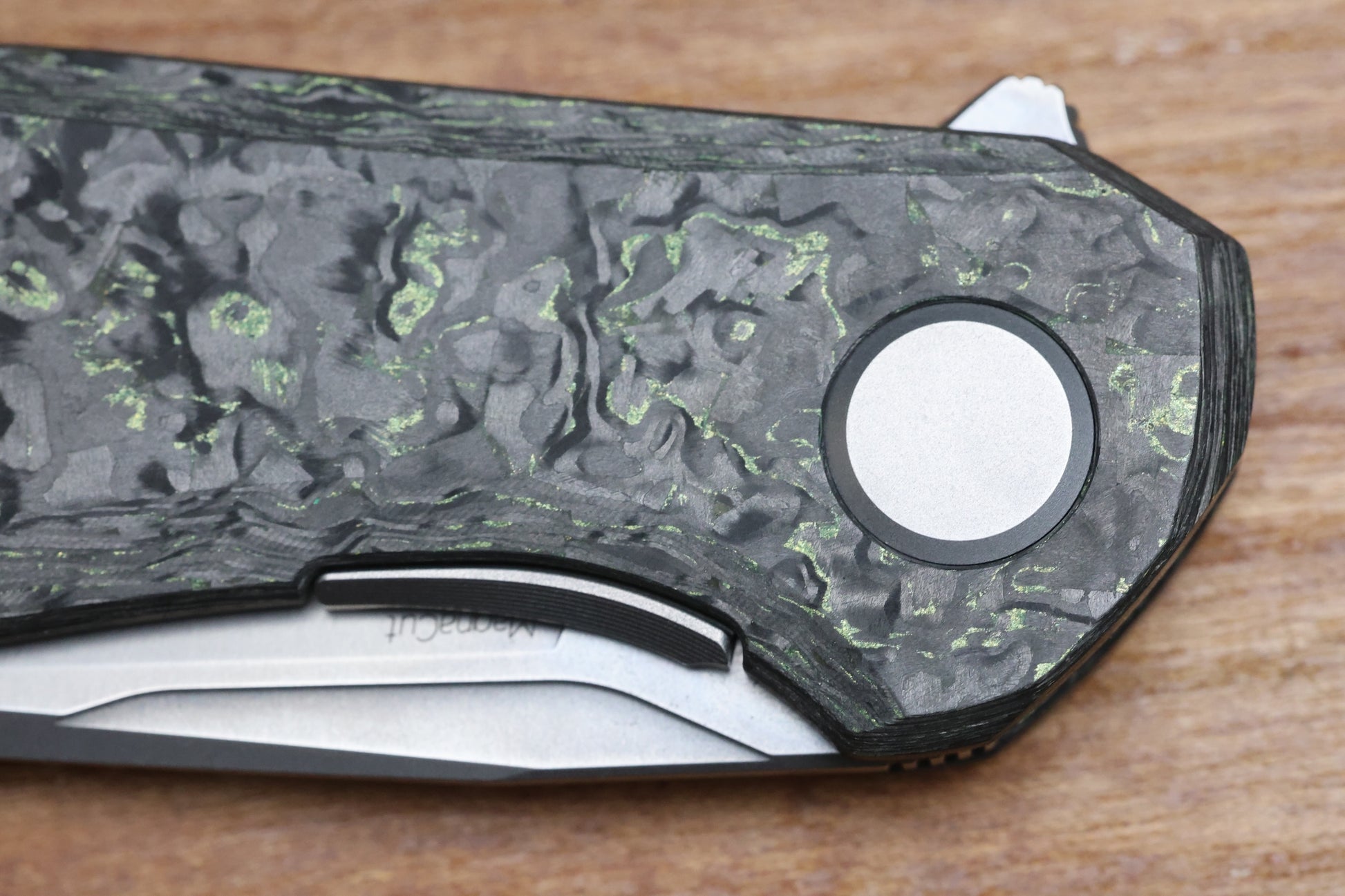 3.54" stonewashed MagnaCut blade with jimping on spine