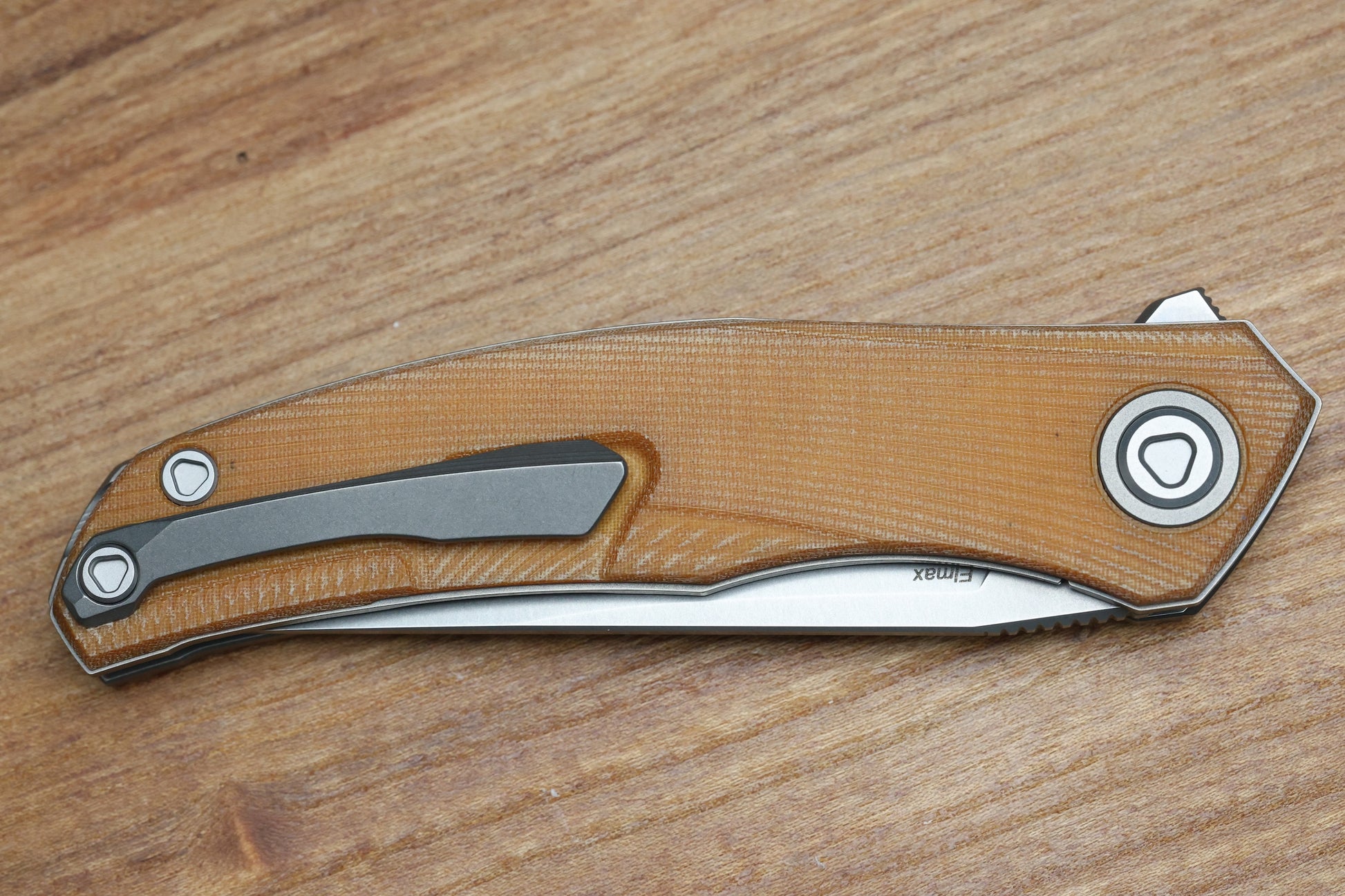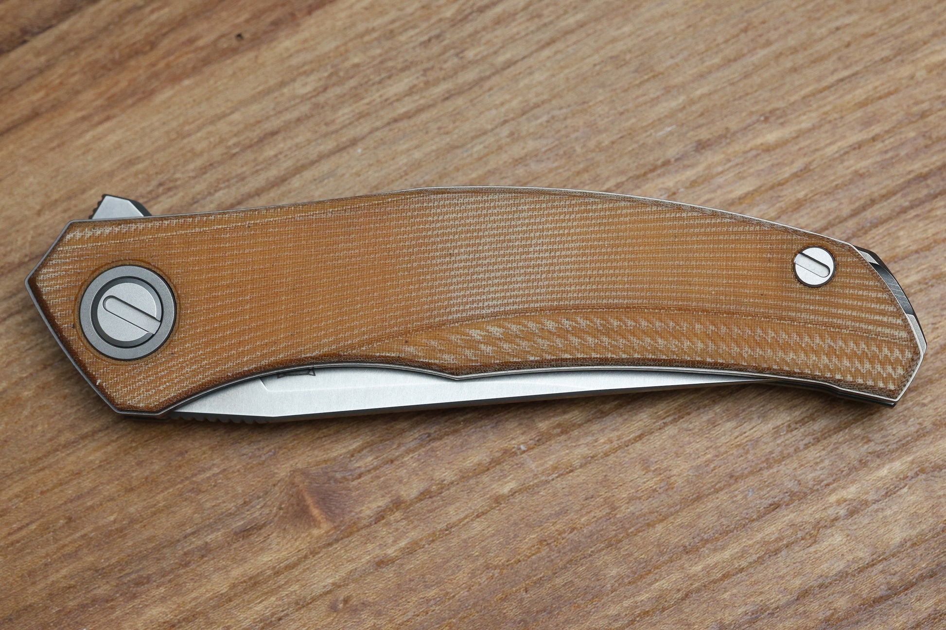 - Light Brown Micarta handle scales with fine textured milling pattern