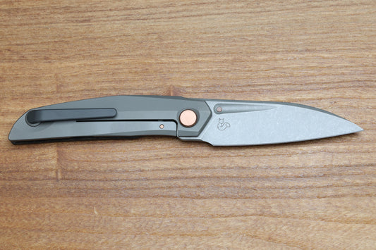 CUSTOM KNIFE FACTORY & ROTTEN DESIGN EVO 1.1 BLACKWASH TI HANDLES W/ M398